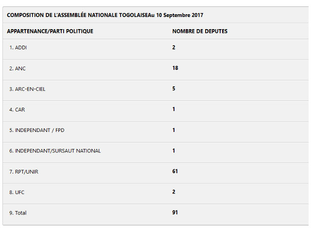Attention, voici la composition de l’Assemblée nationale togolaise
