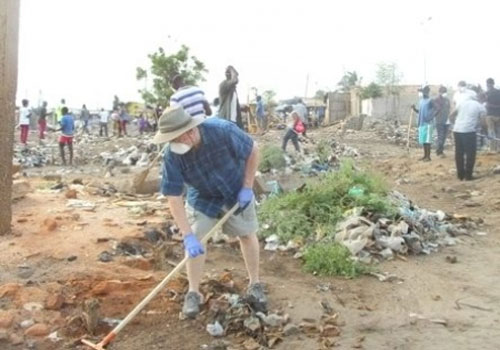 L’Ambassadeur des Etats-Unis au Togo, David Roy Gilmour, balai et râteau à la main, a appuyé ce samedi le nettoyage d’un dépotoir sauvage à Sanvee-Kondji à Aneho (50 km à l’est de Lomé), a constaté l’Agence de presse Afreepress.