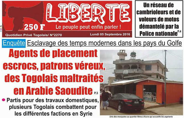 Ce meurtre qui a conduit Mbayang Diop en prison en attendant son jugement, est un acte de désespoir. Que les conditions de vie et de travail sont exécrables ! Bien que le gouvernement saoudien ait adopté en 2014 de nouvelles règles pour protéger les domestiques, leur accordant un jour de congé hebdomadaire et garantissant le paiement de leur salaire, rien n’a changé. Dès que les Togolaises et les autres Africaines atterrissent à Ryad, elles sont récupérées par leurs patrons qui confisquent leur passeport et téléphone portable. Ils leur font signer un nouveau contrat en arabe et les informent qu’elles devront restituer les 1 250 000 FCFA qu’ils ont déboursé et qu’ont encaissé les agences de placement à Lomé. Ils les répartissent dans leur famille d’accueil et passent chaque fin du mois retirer le salaire jusqu’à ce que la dette soit épurée. Chose curieuse, les salaires sont loin, très loin de ceux qui sont prévus dans le contrat au point de départ. Entre 50 et 80 000 FCFA. « On peut estimer que des travailleurs domestiques en situation de travail forcé reçoivent en moyenne 40% du salaire qu’ils devraient recevoir », explique Hans Von Rohland, porte-parole de l’Organisation international de travail (OIT). Et d’ajouter que les ménages privés qui emploient ces domestiques « économisent annuellement environ 8 milliards de dollars en ne payant pas ou pas assez leurs travailleurs ».