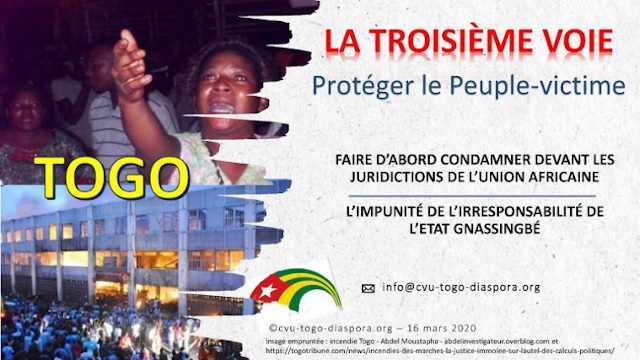 La lutte pour l’alternance au Togo doit passer par une troisième voie, celle-ci doit démarrer avec l’affirmation de la vérité face à la justice. Le Togo Etat-voyou doit être sanctionné pour le non-respect des droits du Peuple togolais victime. La responsabilité de l’Etat et du Gouvernement togolais doivent être engagées.