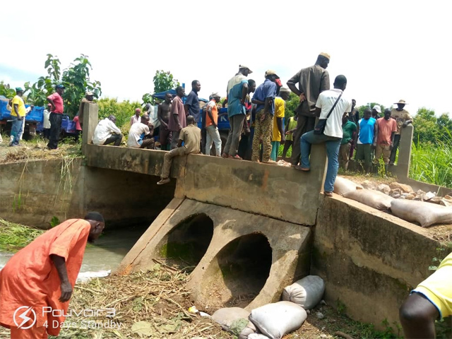Le 30 juillet dernier, c’était le ponceau de Djaré sur la piste rurale du village Kpinsaka à 3 kilomètres du cimetière musulman non loin de l’auberge Kibetankpeou de l’ancien ministre Boukari Tabiou qui s’est effondré suite à une pluie diluvienne. Il s’agit d’une piste stratégique du canton de Bassar qui fut tracée par la SOTOCO (Aujourd’hui NSCT) et qui relie une grande zone agricole, donc empruntée par une masse paysanne et les véhicules pour approvisionner les marchés. Cette voie est importante d’autant plus que la localité abrite plusieurs forages de la Togolaise des Eaux (TdE) qui alimentent les communes. Au lendemain de la chute de cet ouvrage, les populations riveraines des quartiers Binawaliba, Bikouliba, Kpankissi, Wadandé, etc., dans un sursaut citoyen, ont fait la corvée pour apporter une solution intermédiaire à base de cailloux, des sacs et du sable afin de permettre aux engins légers dont les motos et « Motoky » (qui désigne le tricycle chez les Bassar) de pouvoir circuler.