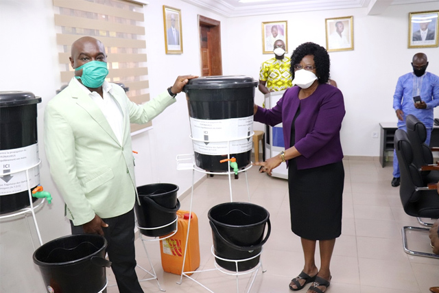 D’un cout total de 1.819.400 FCFA, le don, composé de dispositifs de lavage de mains, des solutions hydro alcooliques, des virucides et des nettoyants, a été réceptionné par Mme KpegbaKafui, Vice-présidente de l’Université de Lomé.
