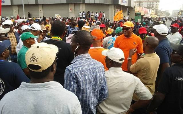 Les cortèges arrivent enfin au carrefour commercial Deckon. Faut-il faire de cet endroit le lieu de chute de la marche ou continuer vers la plage comme d’habitude ?