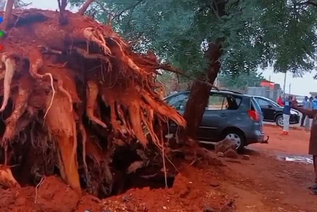 Cette pluie a déraciné un rand baobab qui s’est malheureusement effondré sur plusieurs voitures stationnées devant le siège de Sanlam Assurance.