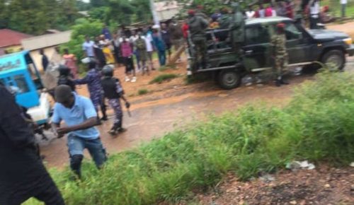 Mais la marche n’a jamais pu démarrer. Tôt le matin, des contingents de policiers, gendarmes et quelques fois de bérets rouges ont été positionnés sur les principaux artères et carrefours de la ville de Kantè. D’autres contingents de forces de défense et de sécurité ont sillonné la ville pour disperser tout attroupement. Un jeune homme finira par être molesté pendant qu’il parlait avec des femmes de son quartier.