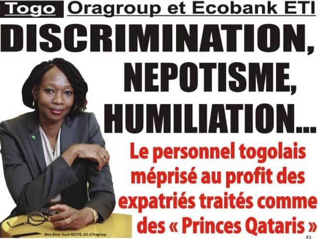 Togo, Oragroup et Ecobank ETI: Discrimination. Népotisme. Humiliation …Les Togolais méprisés au profit des Expatriés traités comme des « Princes Qatari » !