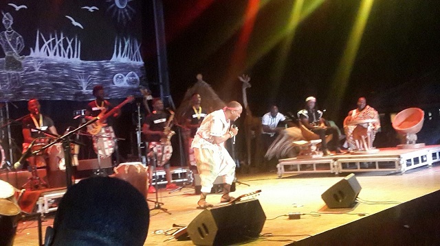 C’est en présence d’un public qui a non seulement fait nombreux le déplacement mais acquis à sa cause, celle de la promotion de la culture africaine et particulièrement togolaise. Il s’est fait accompagner sur scène comme promis par son ‘ami’ Jean Joe Roosvelt de Haïti.